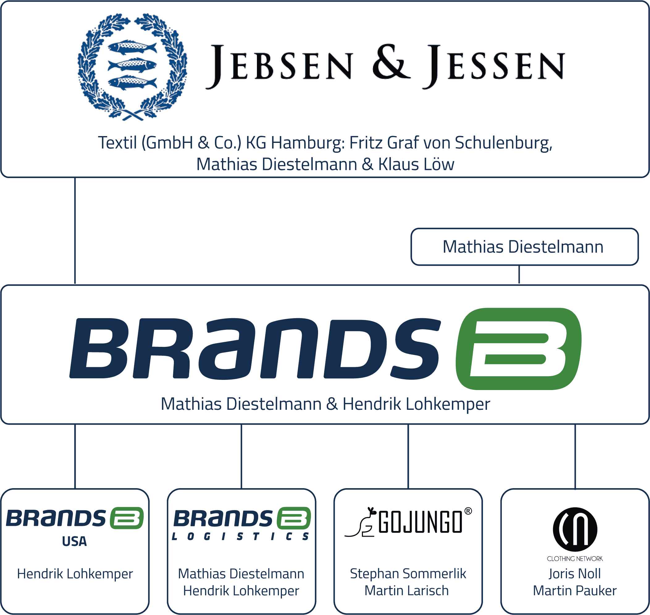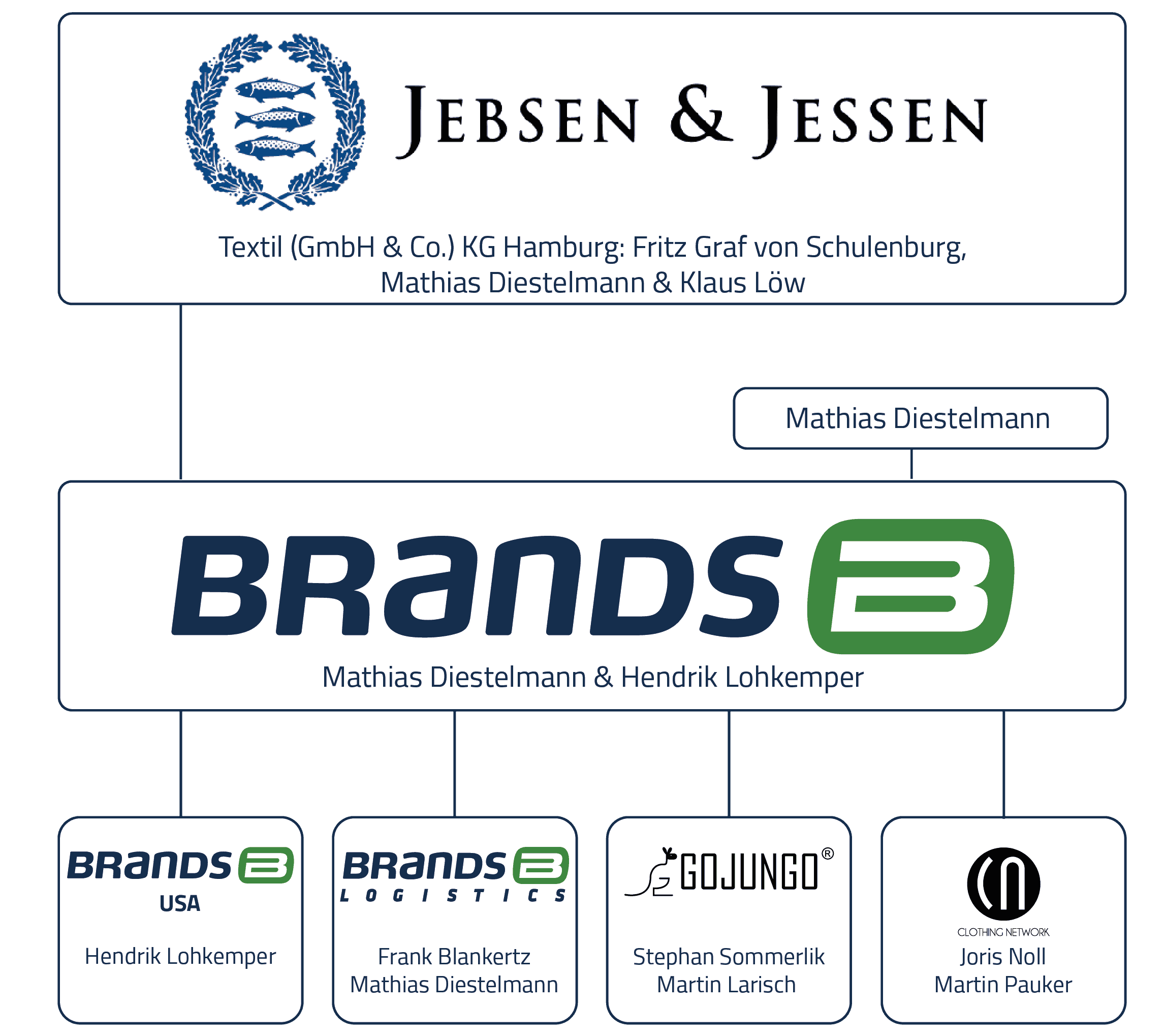 “The globally active Hamburg-based company Jebsen & Jessen has been a strategic partner and majority shareholder of BRANDS Fashion since 2017. Jebsen & Jessen Hamburg has four business divisions – Trading Solutions, Textiles, Garnet Sand, and Industrial Services – and is present in more than 80 countries with its own locations or through exclusive business partnerships. It is part of a globally operating, family-run group of companies with more than 100 companies.”